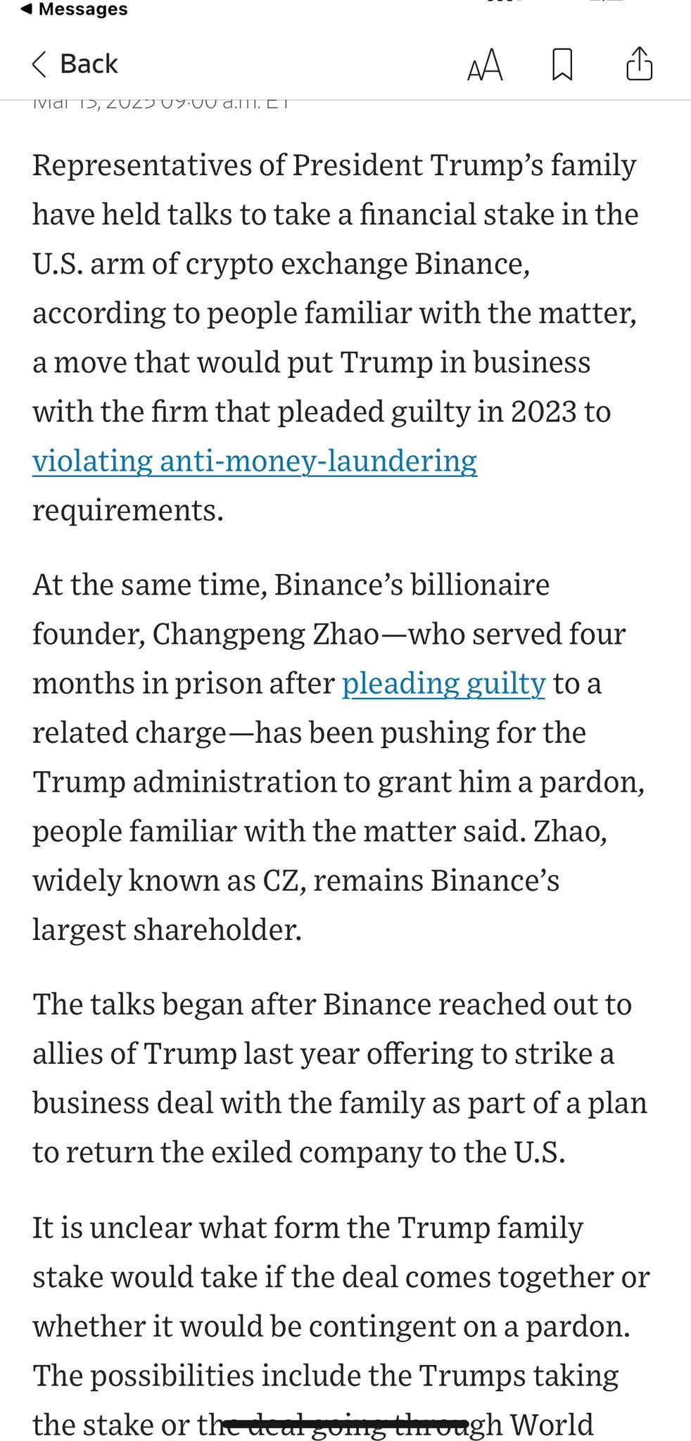For many, the problem isn’t tariffs per se, but rather the unpredictability around how they’re being used. So as we wait for tomorrow’s open – hoping for more of Friday’s ‘relief bounce’ – and you check your 401k wondering where the bottom might be, you probably won’t want to read this story in the WSJ about deal talks between the Trump family and crypto exchange Binance. Financial markets just get more like the wild west every day. In any normal world this would be jawdropping.